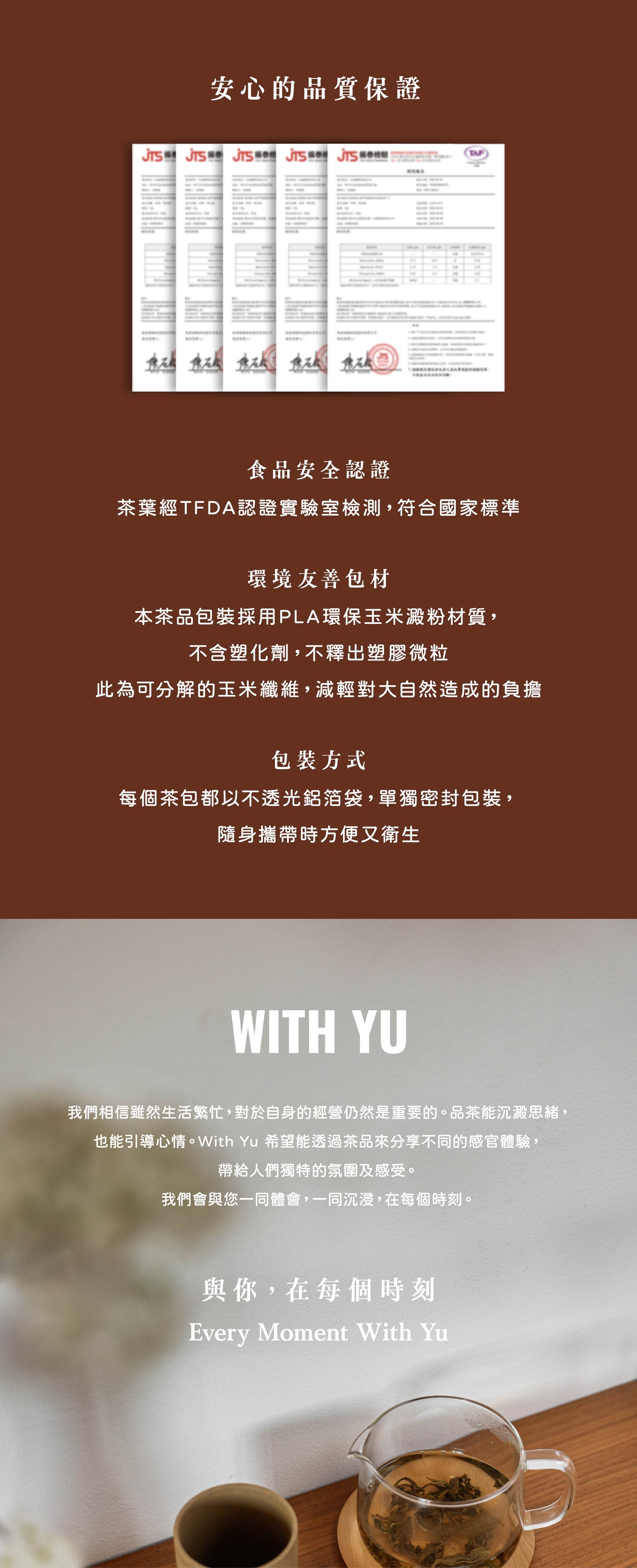 2. 本品牌使用的是PLA環保玉米澱粉材質的茶包。