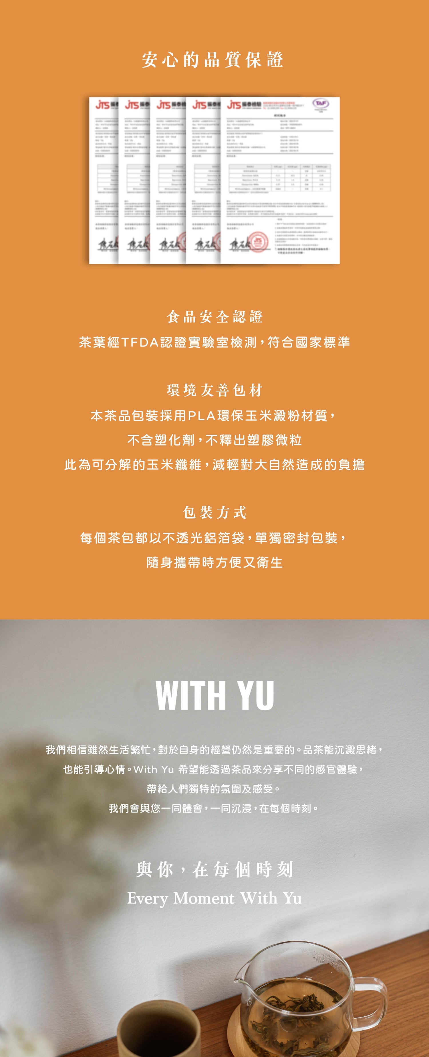 2. 本品牌使用的是PLA環保玉米澱粉材質的茶包。
