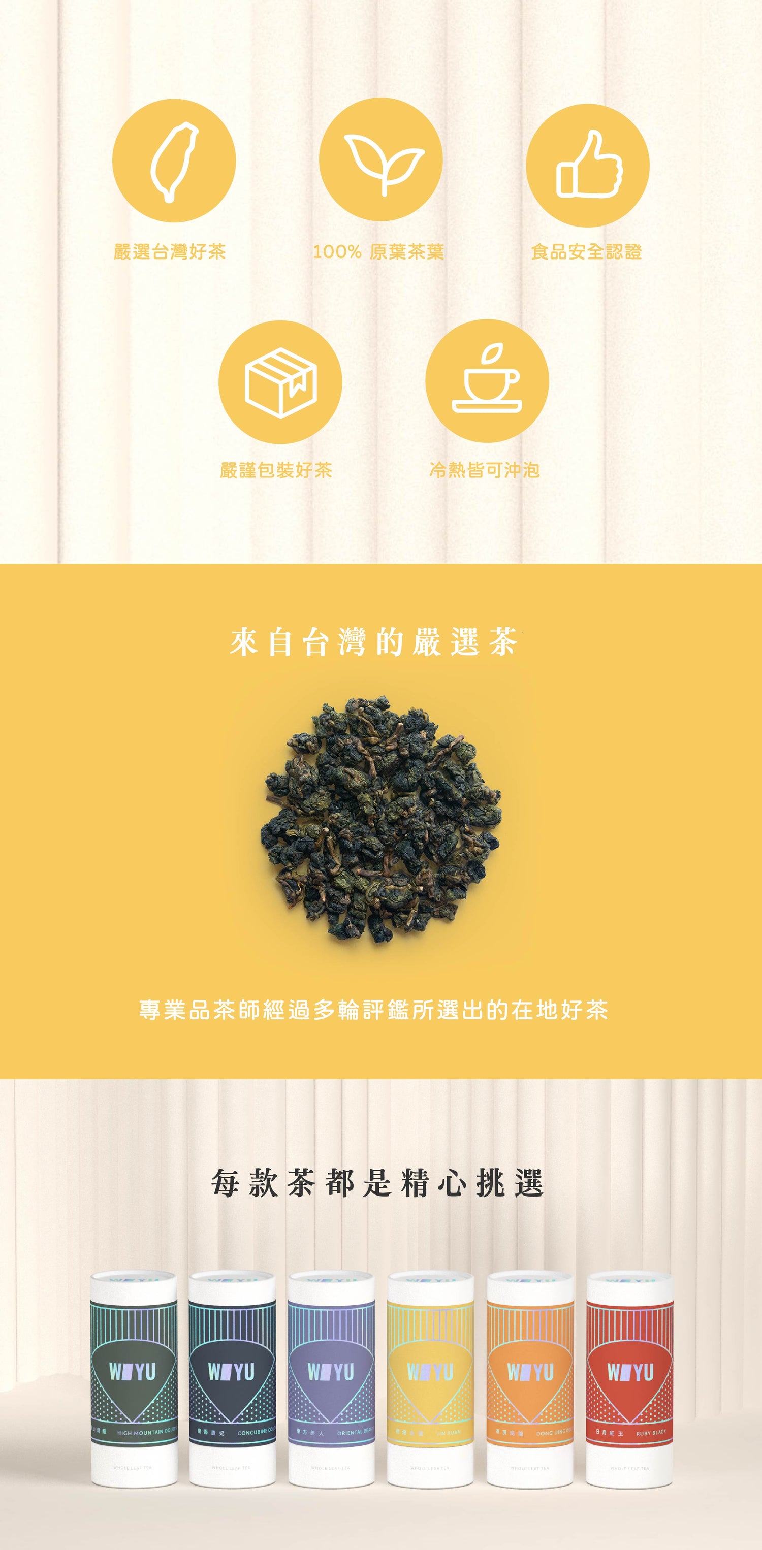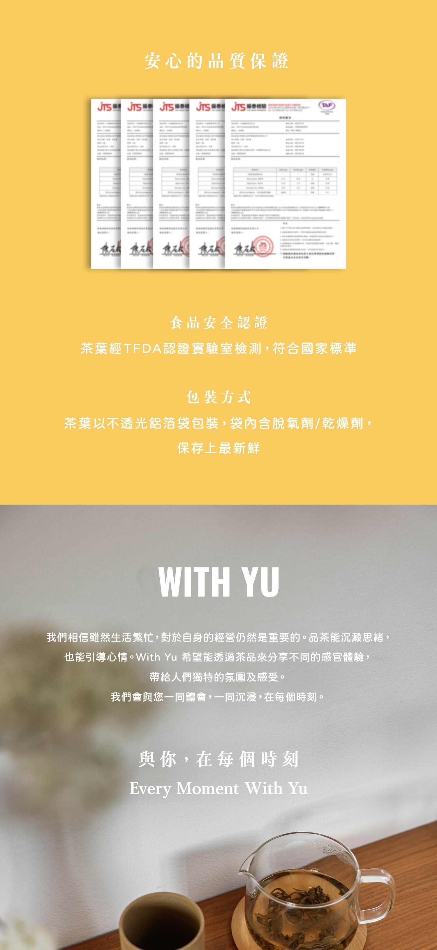 包裝內含:100g±3% 茶葉、中英文賞味指南、中英文沖泡指南