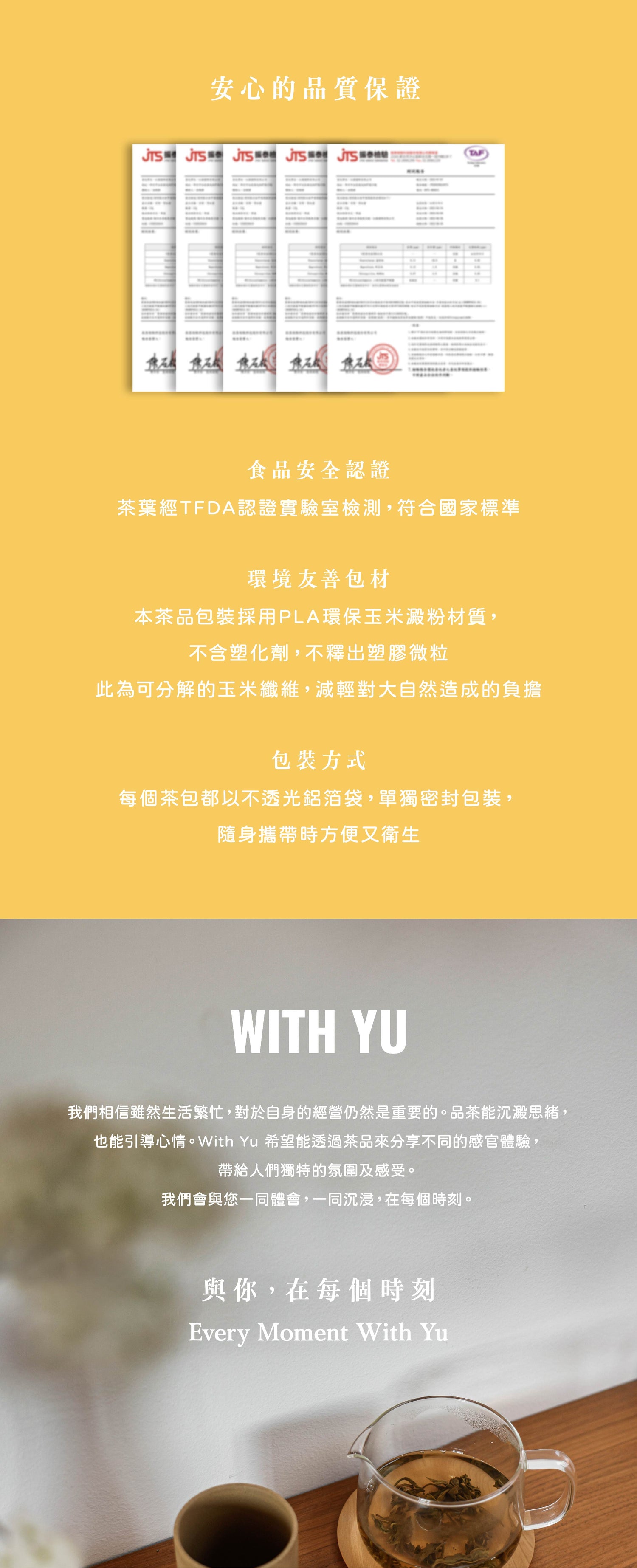 2. 本品牌使用的是PLA環保玉米澱粉材質的茶包。